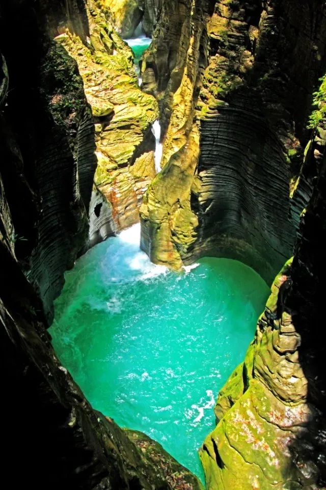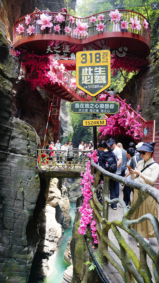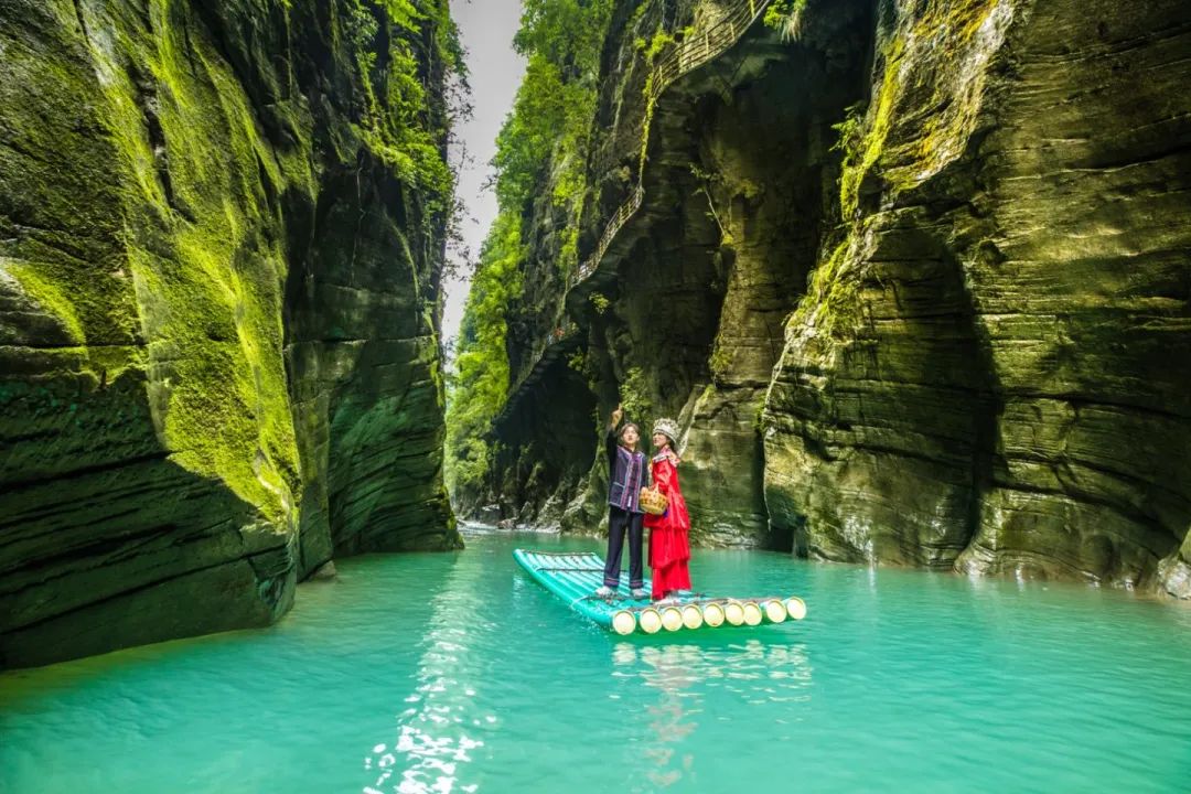 漫步景區(qū),地心天塹的“險(xiǎn)”、地心奇觀的“奇”、地心洞天的“野”和巴鹽古道的“古”依次展現(xiàn)。心形深潭“地之心”如同一顆碧綠的翡翠,浪漫氛圍拉滿。