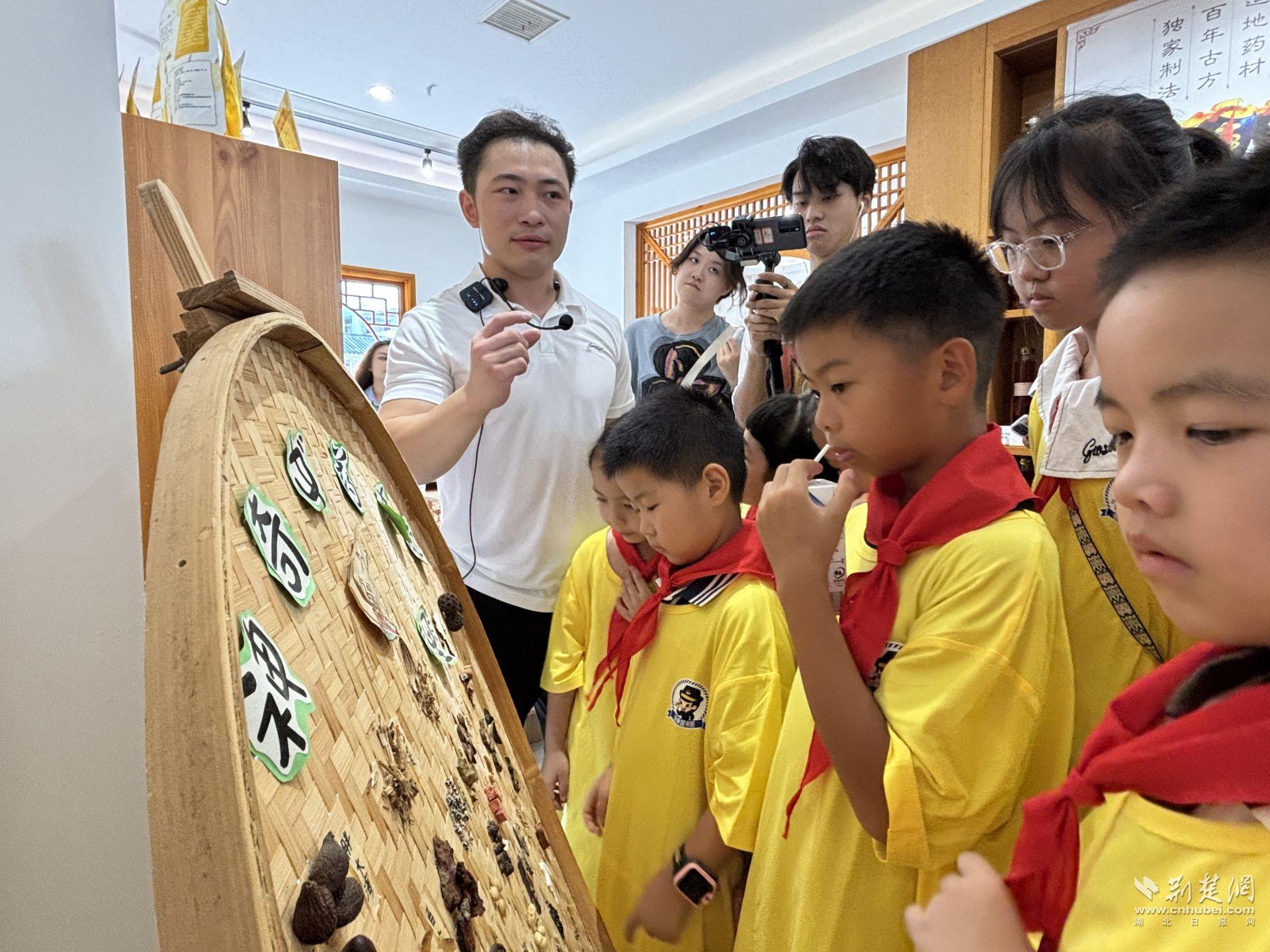 “中藥房現(xiàn)在的藥品種類達(dá)到了600多種,日常常見(jiàn)的路邊雜草,在中醫(yī)藥人眼中可能是治病救命的藥草。”在國(guó)醫(yī)館工作人員的指引下,孩子們學(xué)著辨識(shí)不同的藥材。