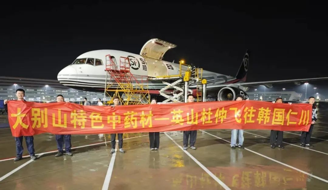 每周一批人福藥業(yè)制造的原料藥,搭乘I98837航班飛抵孟加拉國首都達(dá)卡;700公斤英山云霧飛往越南河內(nèi)、3噸英山茯苓飛往韓國仁川;60億尾魚苗飛往東北三省……