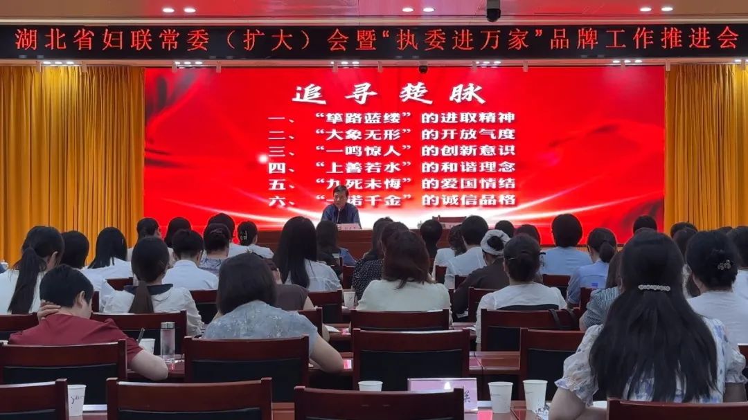 7月30日,湖北省婦聯(lián)常委(擴大)會暨“執(zhí)委進萬家”品牌工作推進會在武漢召開。會議認真學習領會習近平總書記關于群團工作和群團改革的重要論述,貫徹落實省委關于群團工作高質量發(fā)展和全國婦聯(lián)常委(擴大)會議部署要求,總結上半年工作,部署下半年重點任務。省婦聯(lián)黨組書記、主席肖紅梅主持會議并講話,強調要持續(xù)用力推動全部工作向支點建設更加聚焦,要守正創(chuàng)新推進“執(zhí)委進萬家”品牌工作走深走實,要團結奮進推進全年目標任務落地見效、整體提升,為加快建成中部地區(qū)崛起重要戰(zhàn)略支點、奮力譜寫中國式現(xiàn)代化湖北新篇章作出新的更大貢獻。
