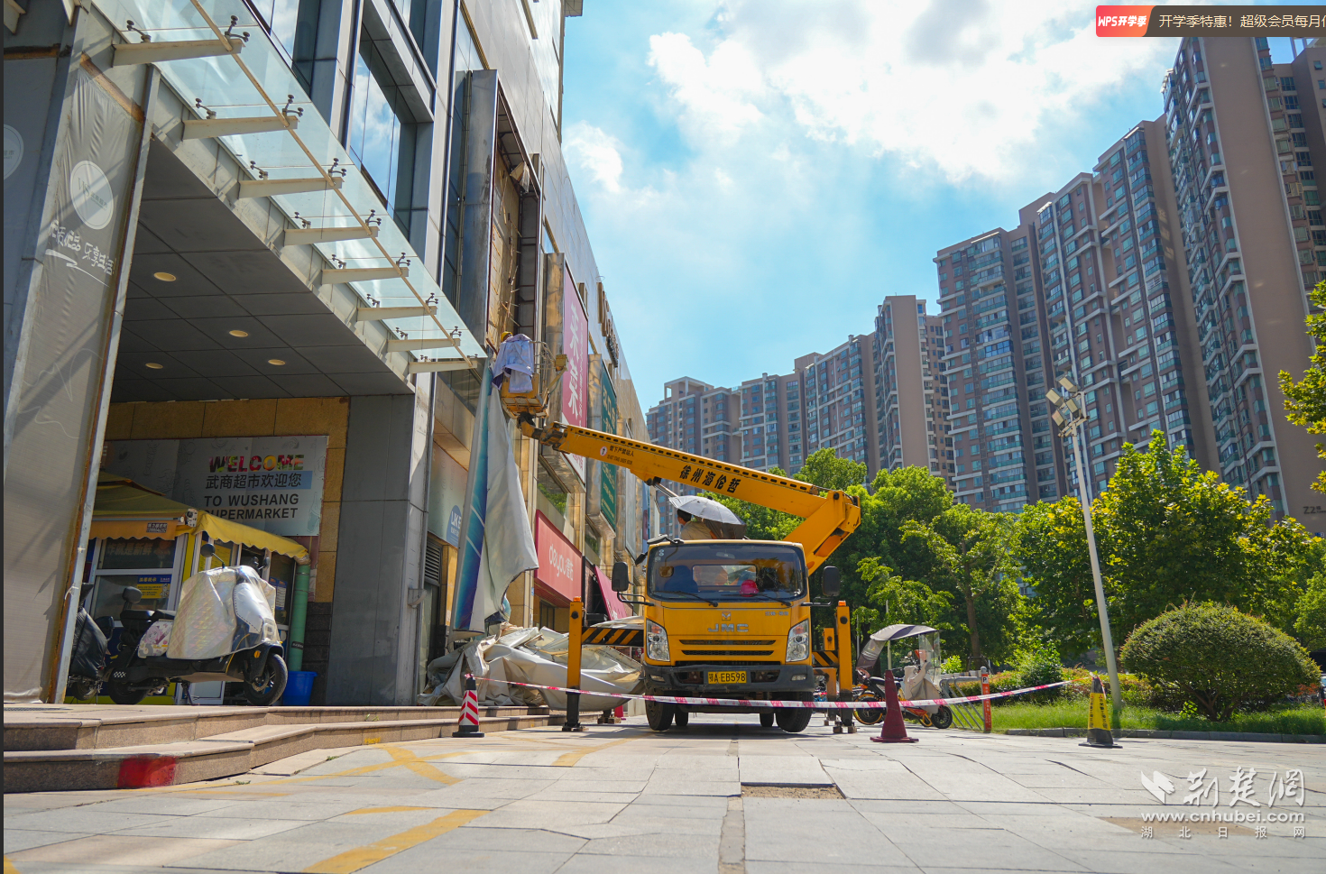 “存在安全隱患的廣告,堅(jiān)決依法拆除,絕不姑息!”8月19日上午,在常青花園中央商業(yè)街武商量販門前,東西湖區(qū)城管執(zhí)法局市政科相關(guān)負(fù)責(zé)人介紹說。在現(xiàn)場,施工人員正搭乘高空作業(yè)車,對武商量販外立面的問題廣告進(jìn)行一一拆除。據(jù)了解,常青花園中央商業(yè)街人流量大、廣告設(shè)置密集,部分廣告牌因長期風(fēng)吹日曬出現(xiàn)畫面破損等問題,既影響市容環(huán)境,更對市民安全構(gòu)成潛在威脅。