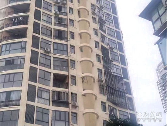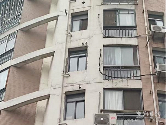 2021年4月,因加氣磚質(zhì)量存在問(wèn)題,遇水膨脹導(dǎo)致外墻開(kāi)裂,一道近2米長(zhǎng)的裂縫橫亙樓體,外墻面的水泥塊經(jīng)常脫落,居民出行存在極大的安全隱患。