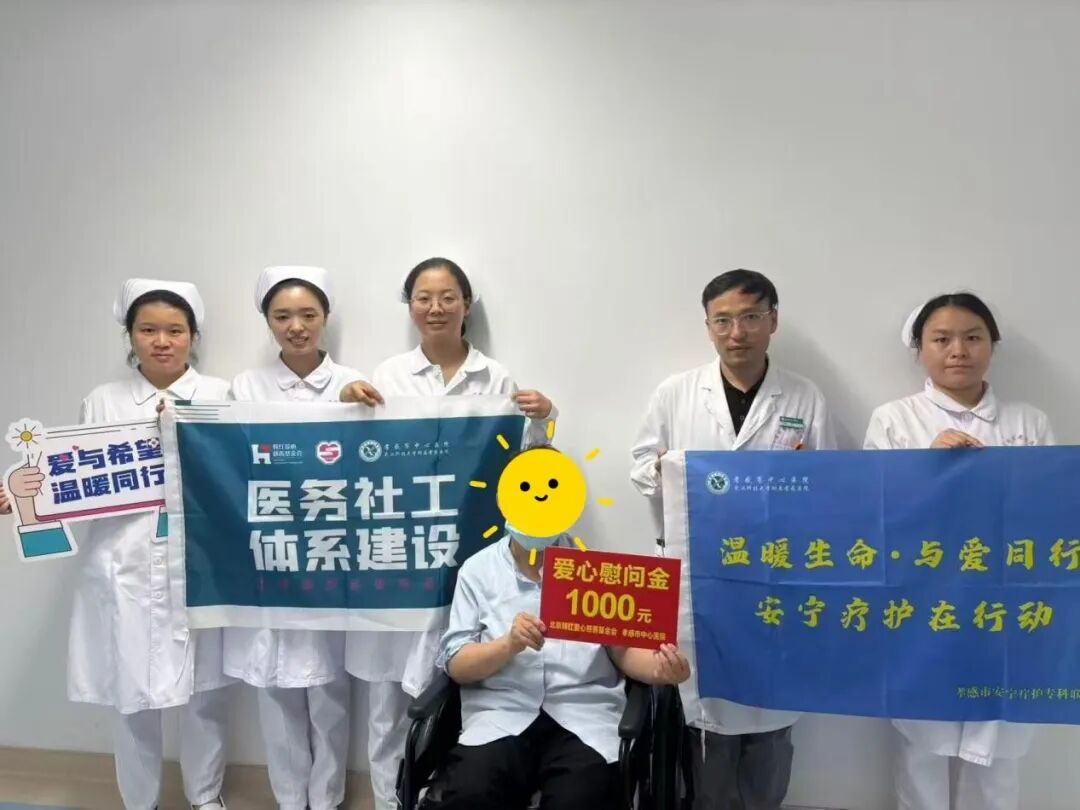 在此次關(guān)愛行動中,市中心醫(yī)院積極鏈接社會慈善資源,與北京韓紅愛心慈善基金會展開深度合作。8月份期間,共為7戶經(jīng)濟特別困難的末期癌癥患者家庭每戶送去了1000元慰問金。這筆來自韓紅基金會的愛心善款,在一定程度上緩解患者家庭在應(yīng)對疾病過程中產(chǎn)生的經(jīng)濟壓力,也讓他們真切地感受到了社會各界的深切關(guān)懷。