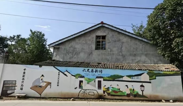 關(guān)廟集村委干部介紹,黃、龍兩家曾因耕地界限起糾紛,雖經(jīng)村委會(huì)多次調(diào)解達(dá)成協(xié)議,約定收割后正式打樁劃線,但兩家仍互不往來(lái)。轉(zhuǎn)機(jī)出現(xiàn)在8月中旬,湖北文理學(xué)院學(xué)生志愿者來(lái)村畫(huà)墻繪,村委會(huì)邀請(qǐng)兩家現(xiàn)場(chǎng)觀摩?!扒Ю锛視?shū)只為墻,讓他三尺又何妨?!避S然于墻的六尺巷新傳墻繪,讓兩家村民內(nèi)心平靜了很多。