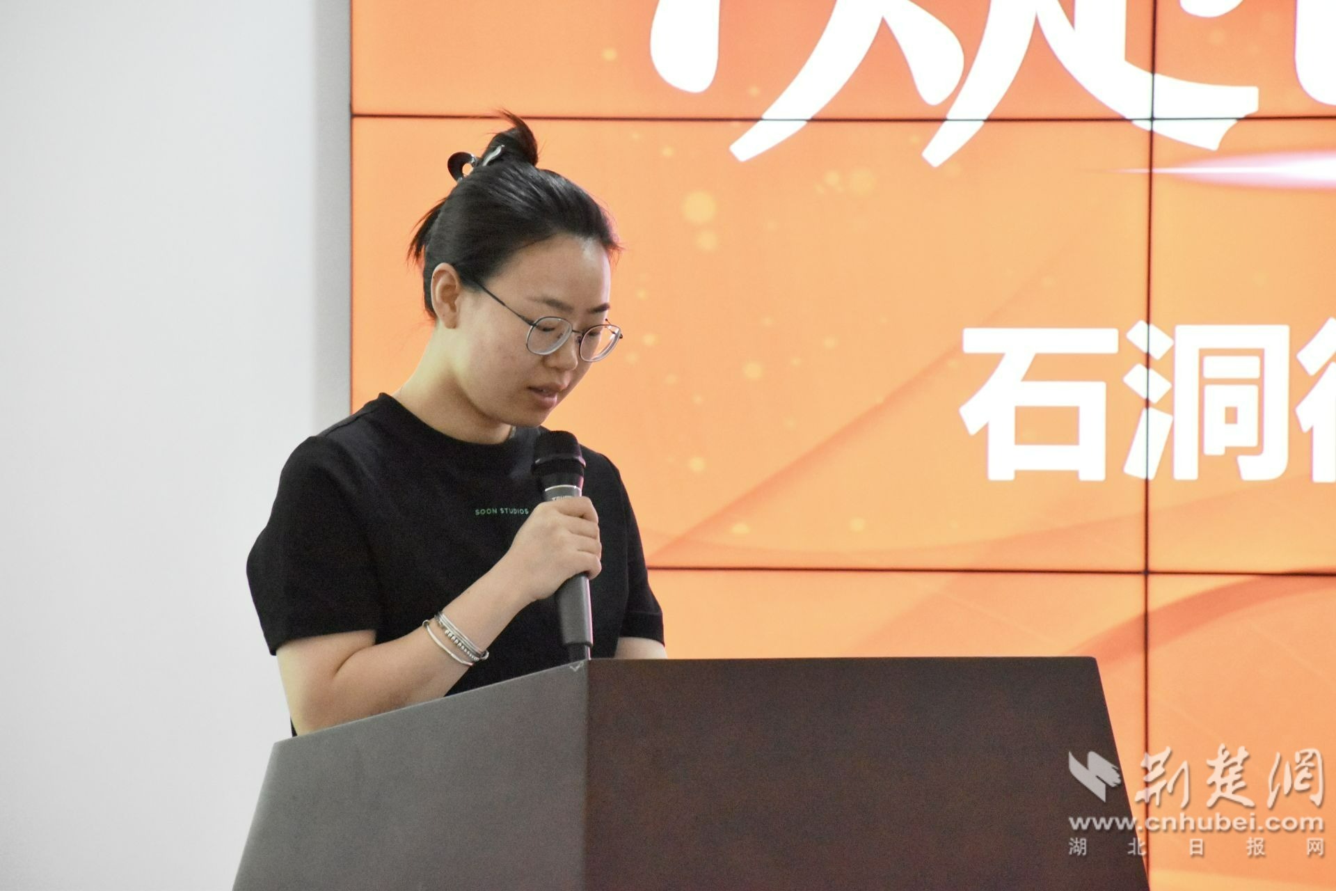 石洞街分校瑜伽班黃金燕老師發(fā)言。 通訊員供圖