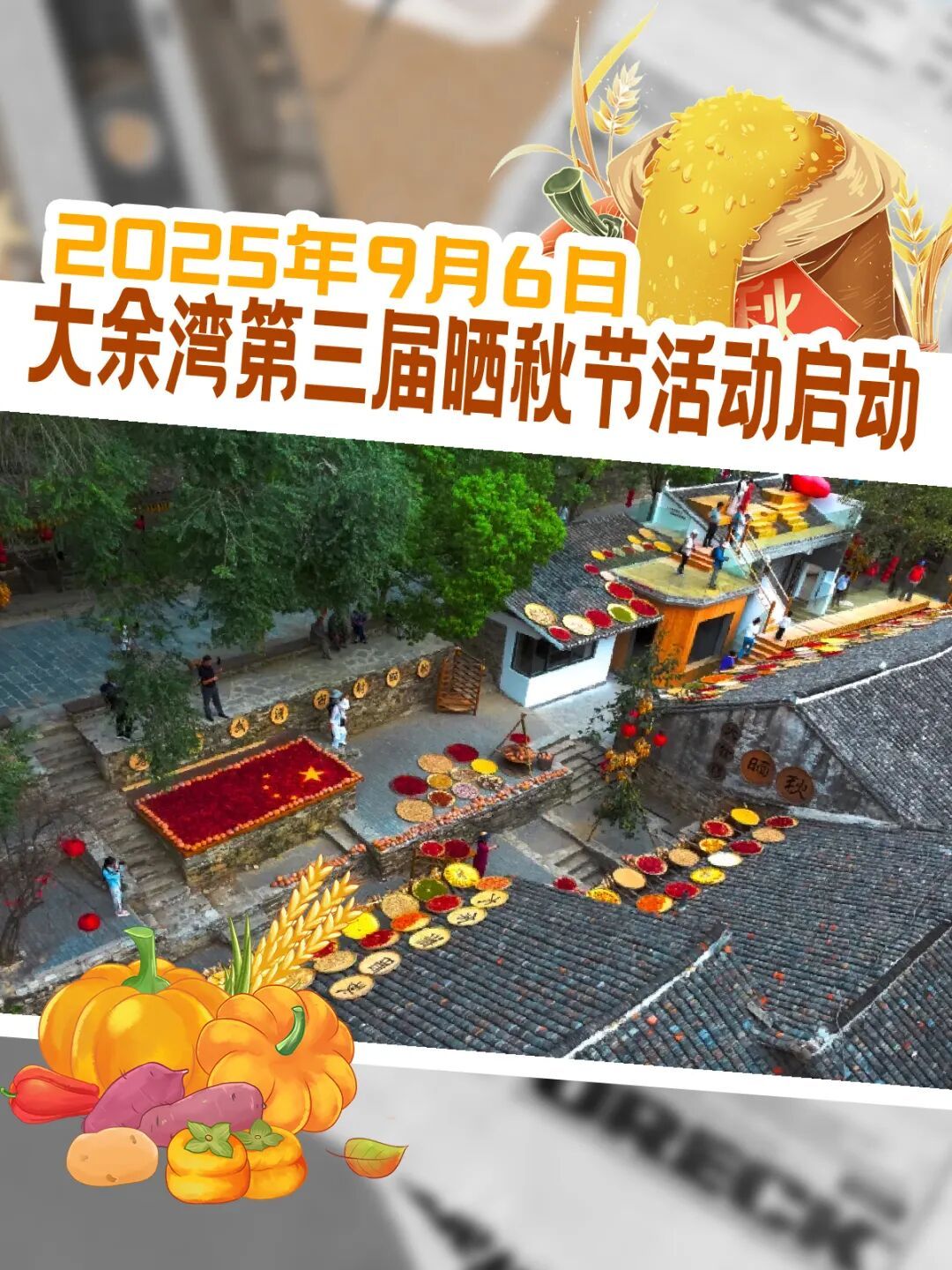 9月6日,這座六百多年的古村落再度迎來一年中最燦爛的時(shí)刻——大余灣第三屆曬秋節(jié)盛大啟幕。來大余灣吧!共赴這場(chǎng)與秋天、與鄉(xiāng)愁、與豐收的約會(huì)。