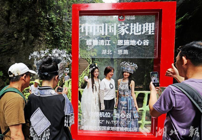 在恩施地心谷的峽谷深處,大自然以最溫柔的筆觸,在巖壁與清泉的交匯處,勾勒出一顆渾然天成的地之心——這里既是天之涯的云瀑邊界,又是海之角的潮汐回響。