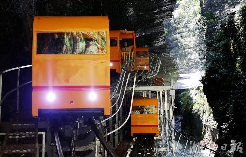 在這里,將開啟一場2400米的云端地心之旅——車窗化作天然IMAX銀幕,飛瀑在腳下碎成鉆石雨,巖層紋路里凝固著遠古海浪,霧氣中突然探頭的彩虹帶來驚喜;200米落差間,軌道車以恰到好處的速度穿梭,每個轉彎都成為與石壁的驚鴻一吻,13分鐘航程里腎上腺素與視覺震撼同步飆升。