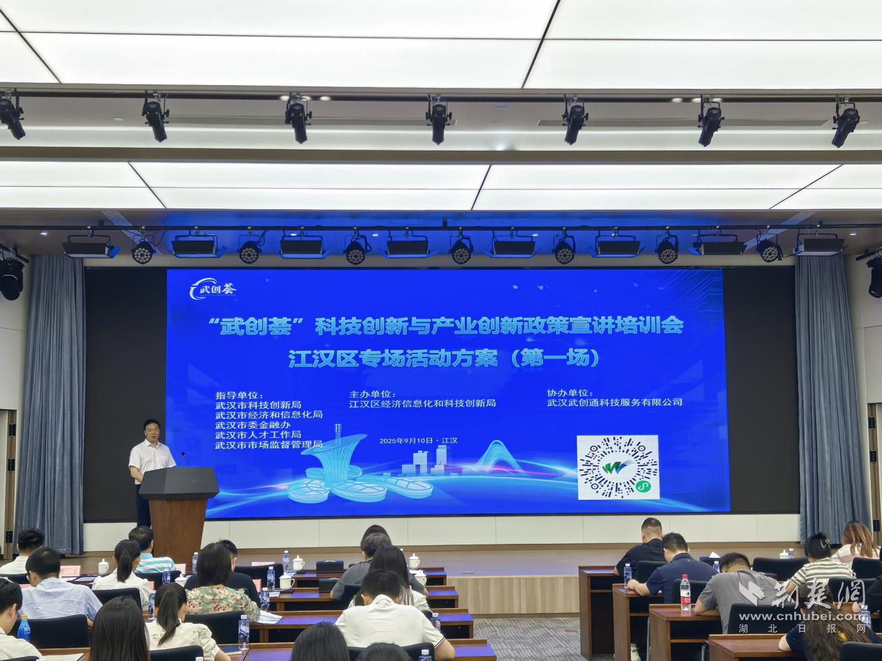 荊楚網(wǎng)(湖北日報(bào)網(wǎng))訊(記者 何婧 通訊員 蘭子君 李卉)9月10日上午,“武創(chuàng)薈”科技創(chuàng)新與產(chǎn)業(yè)創(chuàng)新政策宣講培訓(xùn)會(huì)——江漢區(qū)第一場專場活動(dòng)在武漢金融街大廈舉行?;顒?dòng)由江漢區(qū)經(jīng)科局主辦,金融街集團(tuán)、武創(chuàng)通科技公司承辦,武漢市科創(chuàng)局、市經(jīng)信局、市委金融辦、市人才工作局、市市場監(jiān)管局聯(lián)合指導(dǎo)。