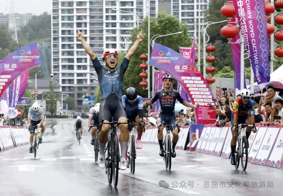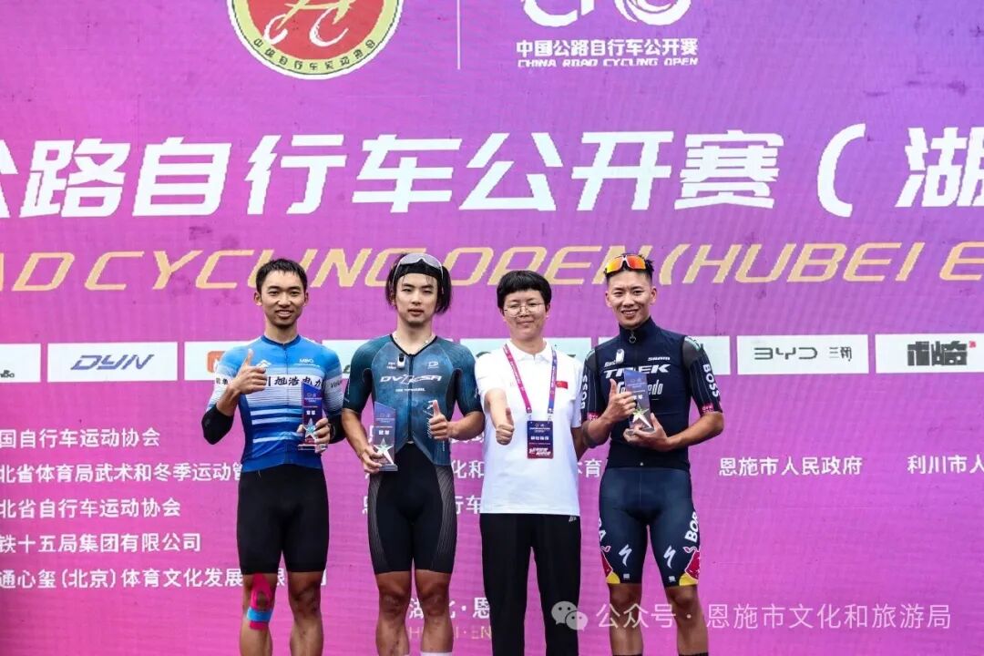 2025年中國公路自行車賽(湖北恩施站)第一賽段所有比賽圓滿結(jié)束,經(jīng)過激烈角逐,跡馳-瑞豹車隊獲得俱樂部組團(tuán)體積分第一名,來自跡馳-瑞豹車隊的VLADISLAY SOZINOV最終憑借強勁的沖刺能力摘得桂冠,被授予白衫,來自GUSTO SUPERTEAM車隊的VITALII和重慶南岸風(fēng)騎捷安特車隊的BLOKHIN IVAN 分獲二、三名;男子精英組、大學(xué)生組、青少年組及女子精英組冠軍分別由來自恒宇單車的馮浩然、任中昊、DYC-晟亦青訓(xùn)選手方宇軒和Bigrock大石魅騎廠隊張婷婷獲得。
