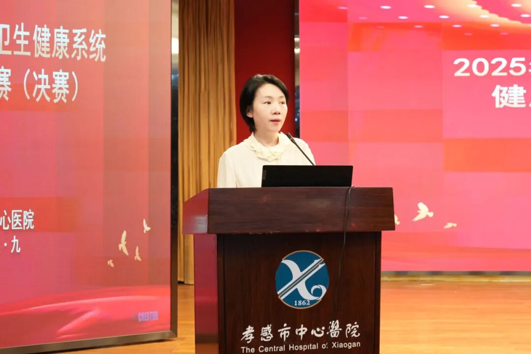 孝感市中心醫(yī)院副院長張海燕在健康科普大賽上進(jìn)行致辭,經(jīng)過前期預(yù)賽,18位來自各醫(yī)聯(lián)體成員單位的參賽代表同臺(tái)競技,圍繞慢性病管理、急救常識(shí)、婦幼健康、老年健康等群眾關(guān)切的健康話題開展了科普宣講。