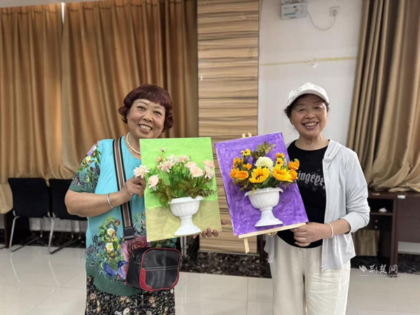 “這旋律一聽就熟!是《沒有共產黨就沒有新中國》!”紅歌競猜環(huán)節(jié),老黨員們爭相搶答,經典旋律喚起共同記憶,現(xiàn)場氣氛格外熱烈。隨后的油畫創(chuàng)作中,大家在老師的指導下手握畫筆、挑選顏料,在畫板上細細涂色,并將永生花點綴在畫作中。經過數(shù)小時的設計制作,一幅幅獨具創(chuàng)意的立體畫在居民們手中誕生。
