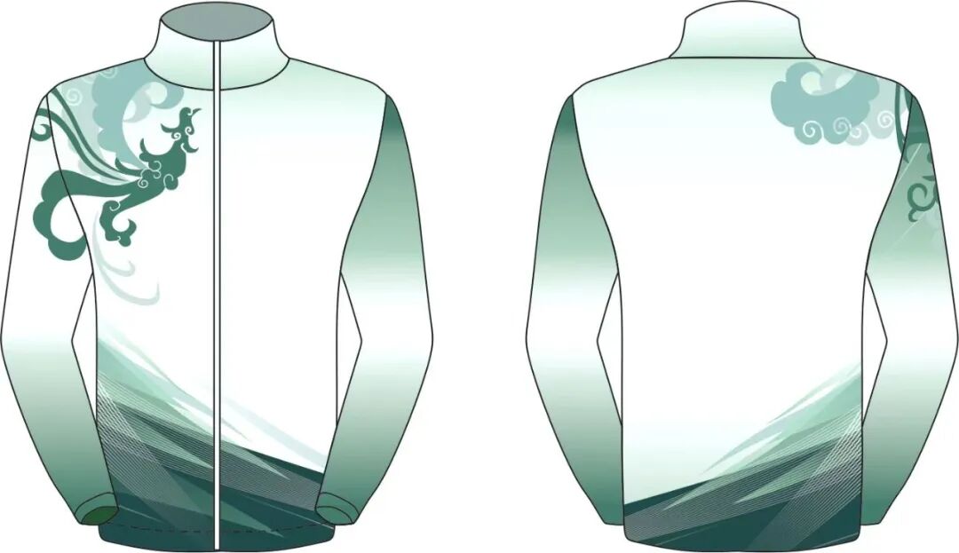 以白色為基色,運(yùn)用淺綠、翠綠、墨綠不同層次的綠色,呈現(xiàn)鳳鳥(niǎo)“展翅騰飛” 的視覺(jué)遞進(jìn)感。展現(xiàn)了楚文化的獨(dú)特精神內(nèi)涵,寓意湖北的繁榮昌盛、技能騰飛的美好未來(lái)。