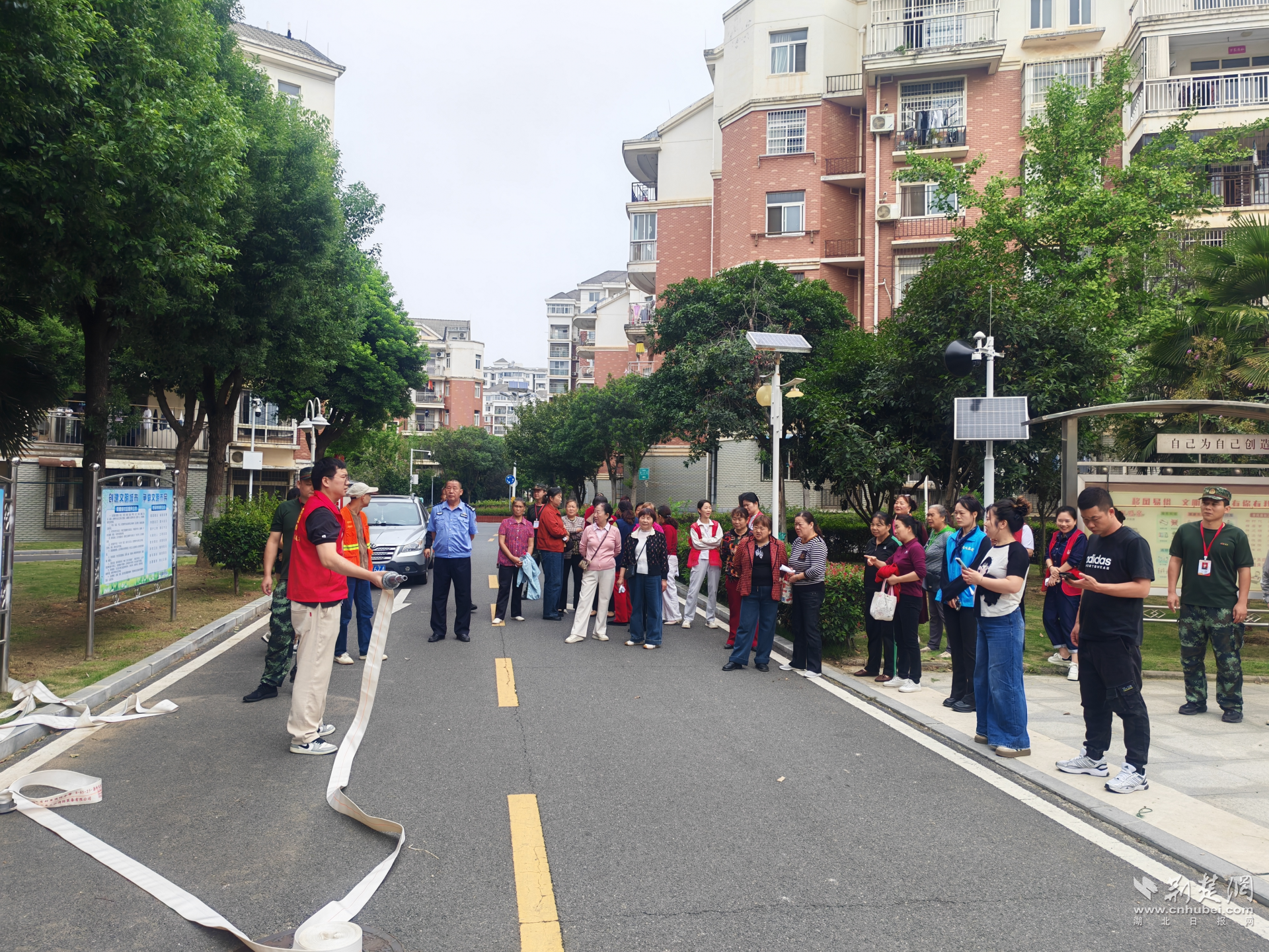本次活動,社區(qū)緊扣節(jié)日期間的安全防范要點,特邀請湖北紅門消防專業(yè)團隊,聯(lián)動轄區(qū)物業(yè)公司、居家養(yǎng)老服務中心、消防站、片區(qū)民警形成“多方協(xié)作矩陣”,并組織志愿者與社區(qū)工作人員等40余人共同參與。