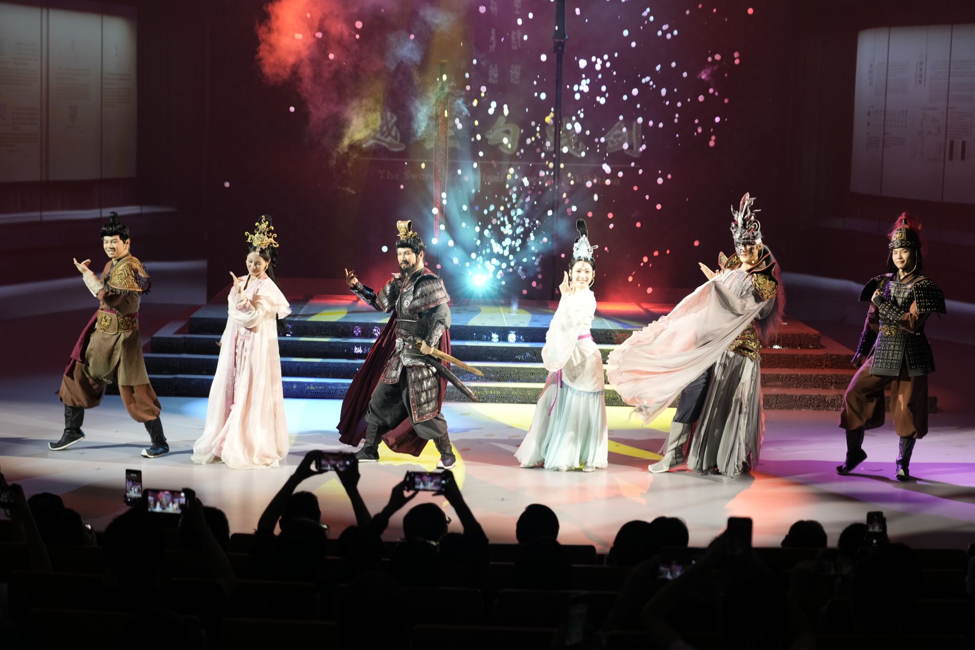 《遇見?勾踐劍》以楚越結(jié)盟為主線,通過勾踐歸國、鑄劍復(fù)國、西施入?yún)?、越楚?lián)姻、滅吳稱霸等篇章,講述了勾踐劍為何鑄造、又如何流入楚國的傳奇歷程,立足吳晉與楚越兩大聯(lián)盟爭霸春秋的歷史背景,生動再現(xiàn)了時代風(fēng)云。該劇實現(xiàn)了戲劇藝術(shù)與科技手段的有機融合,以創(chuàng)新的全息投影與真人互動形式,為觀眾奉上一場視聽盛宴。