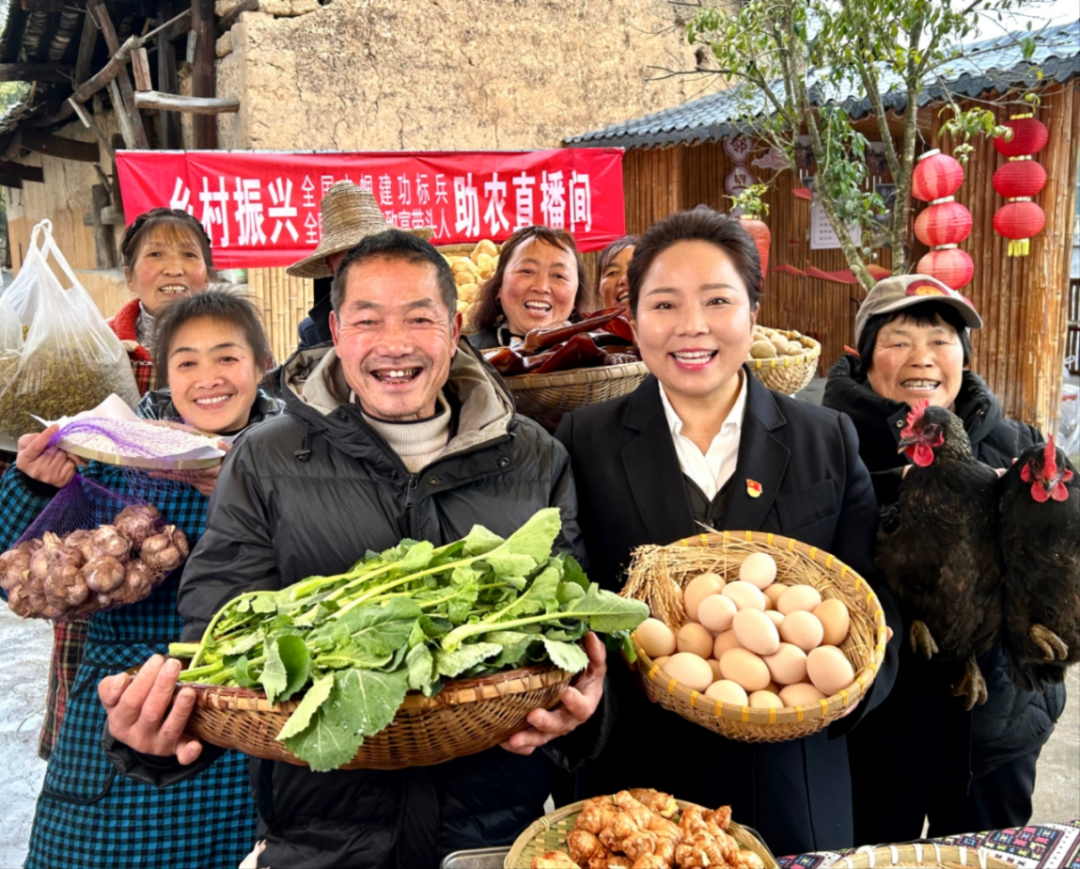 △全國巾幗建功標兵、建始縣村播婦聯(lián)主席秦娥帶領(lǐng)村播及周邊農(nóng)戶開展鄉(xiāng)村助農(nóng)直播