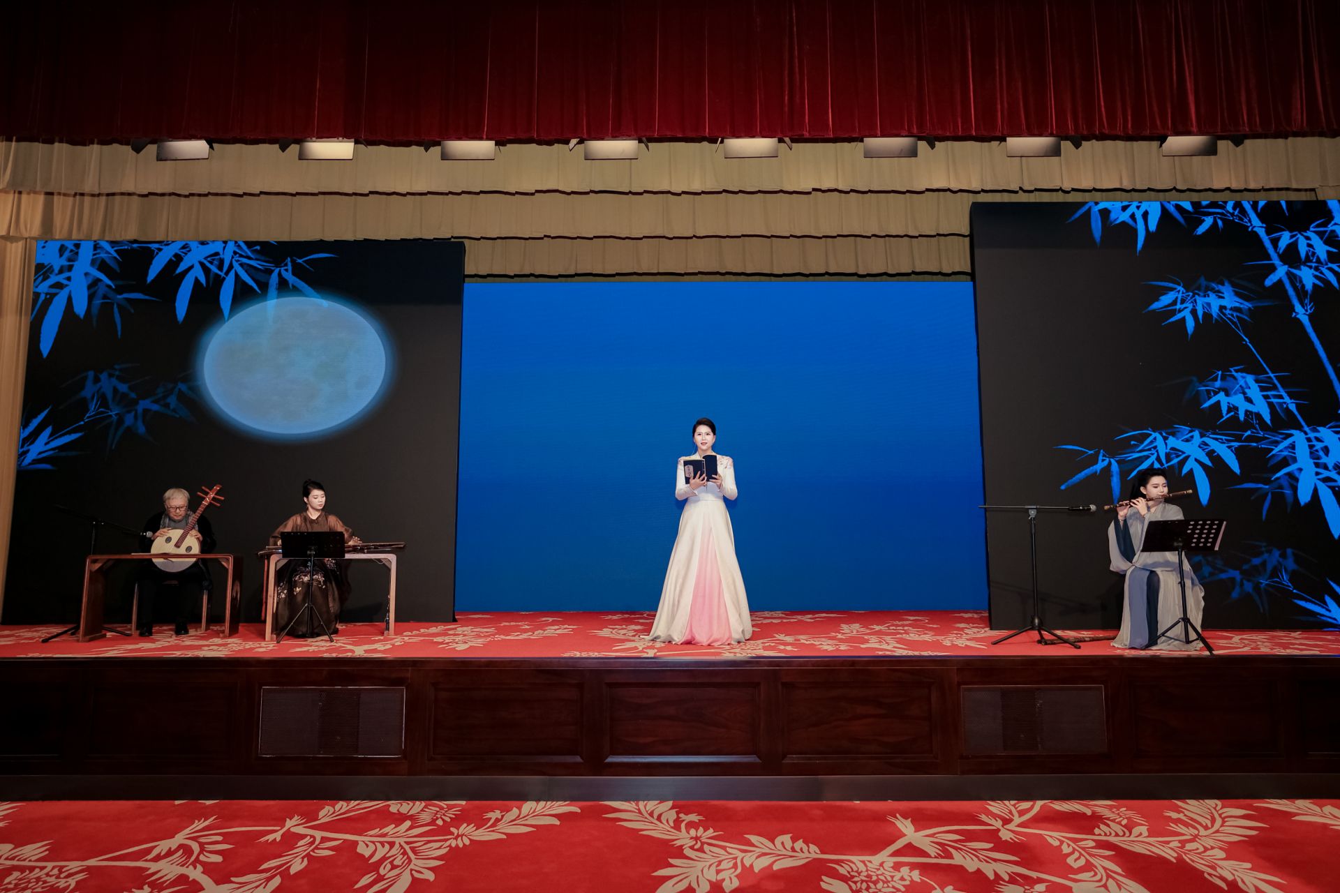 伴隨著熱烈掌聲,古琴·京劇跨界藝術(shù)《琴芳梅蘭》精彩上演。演出以梅蘭芳經(jīng)典京劇唱段為藍(lán)本,選取《貴妃醉酒》《霸王別姬》《洛神》三出劇目的經(jīng)典唱腔及曲牌,經(jīng)過重新編曲,以演奏、演唱及文化講述的形式精彩呈現(xiàn)。余韻悠遠(yuǎn)的古琴演奏,配合原汁原味的梅派唱腔,輔以笛、簫等雅樂,實(shí)現(xiàn)京劇“梅派”藝術(shù)與古琴的完美交融。