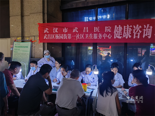 當(dāng)日,隨著夜色降臨,義診桌前臺(tái)燈逐一亮起。來(lái)自武昌醫(yī)院消化內(nèi)科、呼吸內(nèi)科等科室的專(zhuān)家醫(yī)師現(xiàn)場(chǎng)坐診,就常見(jiàn)的慢性病管理、飲食養(yǎng)生及用藥安全等問(wèn)題,為居民進(jìn)行耐心解答,并對(duì)不同病癥的居民給出個(gè)性化的健康指導(dǎo)。社區(qū)衛(wèi)生服務(wù)中心婦保科的醫(yī)生也忙碌其中,為女性居民提供婦科健康咨詢(xún)與知識(shí)科普。