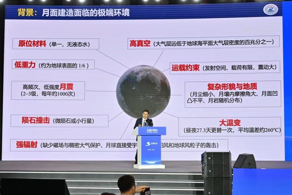 華中科技大學丁烈云教授的報告“月面建造的科學技術挑戰(zhàn)”,緊扣深空探測的時代命題,深刻剖析了月面建造在選址、結構、材料、性能等六個方面的挑戰(zhàn),既展現(xiàn)了中國在深空建造領域的前瞻布局,更讓現(xiàn)場觀眾感受到科研工作者為航天夢矢志攻關的決心。