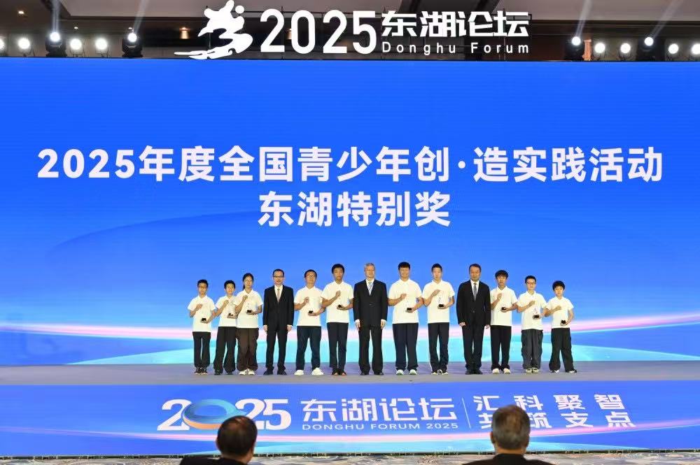 當青春創(chuàng)意遇上科技星光,東湖之畔綻放創(chuàng)新光芒。開幕式上,李德仁、丁烈云、丁榮軍、謝先啟、孫和平、李培武、楊春和、金梅林等專家依次登臺,為2025年度全國青少年創(chuàng)·造實踐活動東湖特別獎代表頒獎并贈送寄語,希望年輕一代熱愛科學,保持好奇,勇于探索,未來為祖國做貢獻。