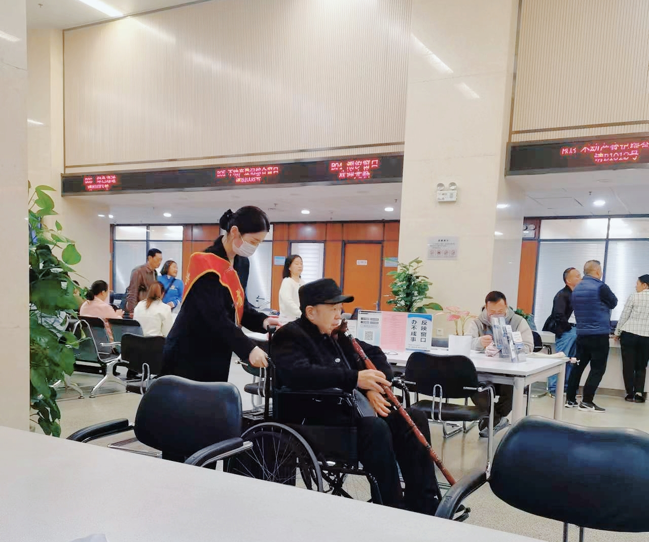 暖心服務(wù),細(xì)節(jié)處的“孝心”。除了業(yè)務(wù)辦理,“孝著辦”團(tuán)隊(duì)還注重從細(xì)節(jié)處體現(xiàn)對(duì)老年人的關(guān)懷。在政務(wù)服務(wù)中心大廳,設(shè)置了老年人休息區(qū),配備老花鏡、急救藥品、輪椅等便民設(shè)施;針對(duì)老年人聽力下降的問題,團(tuán)隊(duì)為工作人員配備了便攜式擴(kuò)音器;在“敬老月”期間,攜手公安、郵政等部門開展了“警郵聯(lián)動(dòng)”活動(dòng),60歲以上老年人申辦出入境證件可享受EMS特快專遞免費(fèi)寄遞服務(wù),真正實(shí)現(xiàn)“辦事零跑腿、服務(wù)送上門”。