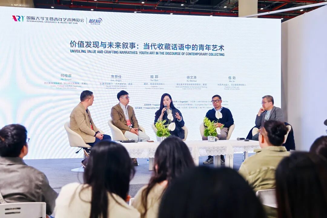 備受矚目的重頭戲是由四川美術(shù)學(xué)院教授、博士研究生導(dǎo)師、策展人何桂彥擔(dān)綱策劃的兩場(chǎng)“學(xué)術(shù)論壇”,分別于開幕日上午與下午在大藝博論壇區(qū)開講,官方直播間同步開播。首場(chǎng)論壇「情感認(rèn)知與視覺重構(gòu):新媒介影響下的青年藝術(shù)實(shí)踐」,聚焦于新媒介技術(shù)時(shí)代催生的全新的美學(xué)范式如何影響青年藝術(shù)家的創(chuàng)作。特邀廣州美術(shù)學(xué)院藝術(shù)與人文學(xué)院院長、教授、策展人胡斌,大藝博往屆參展藝術(shù)家冷廣敏、饒維懿,2025大藝博FREE計(jì)劃藝術(shù)家個(gè)展參展藝術(shù)家孫躍峰作為嘉賓,由大藝博學(xué)術(shù)部總監(jiān)、策展人周敏主持。第二場(chǎng)論壇「價(jià)值發(fā)現(xiàn)與未來敘事:當(dāng)代收藏話語中的青年藝術(shù)」從“語言-機(jī)制-系統(tǒng)-未來”四個(gè)維度,探討青年藝術(shù)的價(jià)值發(fā)現(xiàn)與藝術(shù)生態(tài)的營建。特邀收藏家、東通菜園園丁、藝術(shù)愛好者焦景佳,收藏家、剩余空間創(chuàng)始人眭群,湖北美術(shù)學(xué)院繪畫學(xué)院院長、教授徐文濤,Hi藝術(shù)出品人、玉蘭堂畫廊創(chuàng)始人伍勁作為論壇嘉賓,由何桂彥擔(dān)任主持。