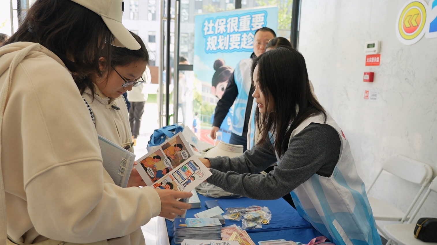 社保政策科普漫畫《小藍(lán)寶社保奇遇記》吸引大學(xué)生們駐足翻閱