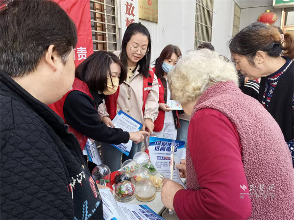 工作人員向小區(qū)居民講解如何辨別新型毒品。 通訊員供圖