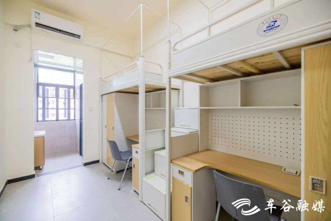 軍山校區(qū)建有7棟學(xué)生宿舍樓。北區(qū)的2棟主要面向本科生,以四人間為主。南區(qū)的5棟主要面向研究生,碩士生宿舍為兩人間,博士生宿舍為八人套房。宿舍樓一層為公共空間與服務(wù)樞紐,設(shè)有接待前臺(tái),提供寄存、維修、反饋等服務(wù),設(shè)有多功能學(xué)習(xí)與活動(dòng)空間、自習(xí)室、研討室、黨團(tuán)活動(dòng)室、咨詢室,滿足多種需求。二層及以上是住宿區(qū),電梯直達(dá)、功能完善,公共服務(wù)區(qū)配備洗衣機(jī)、烘干機(jī)、洗鞋機(jī)、直飲機(jī)。宿舍采用智能門鎖,上床下桌,獨(dú)立衛(wèi)浴,多功能學(xué)習(xí)桌搭配人體工學(xué)座椅,為學(xué)生提供舒適的學(xué)習(xí)住宿環(huán)境。