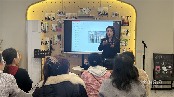 老師正在介紹常用美妝工具。 通訊員供圖