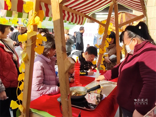 畫糖畫攤位前圍滿了好奇的小朋友,民俗老師手持糖勺,在案臺上揮灑自如,轉(zhuǎn)眼就勾勒出各類圖案,引得孩子們陣陣驚嘆。在糖葫蘆攤位,晶瑩剔透的糖殼包裹著酸甜的山楂,咬上一口,滿是幸福的味道。