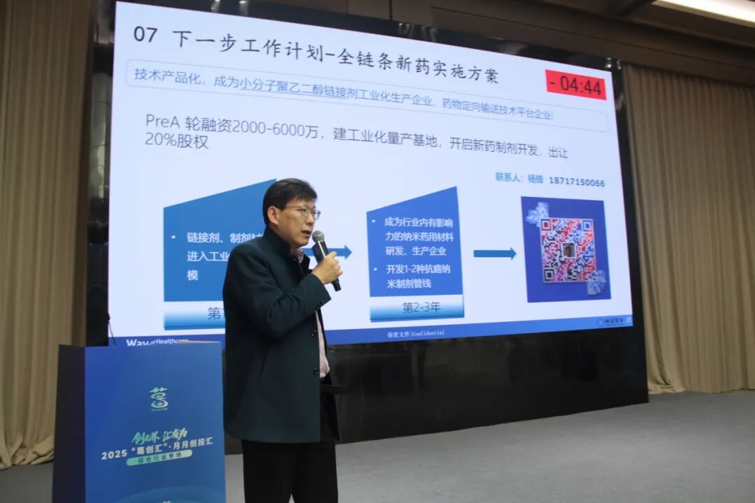 項(xiàng)目路演作為核心環(huán)節(jié),六大高精尖項(xiàng)目同臺(tái)競(jìng)技,展現(xiàn)從“0到1”的突破性創(chuàng)新實(shí)力。抗癌納米脂質(zhì)體制劑新材料項(xiàng)目由深耕生物醫(yī)藥領(lǐng)域多年的楊鋒博士領(lǐng)銜,其獨(dú)家單分散小分子量PEG工業(yè)化量產(chǎn)技術(shù),一舉突破脂質(zhì)體納米顆粒(LNP)生產(chǎn)瓶頸,填補(bǔ)國(guó)內(nèi)外產(chǎn)業(yè)化空白。公司主營(yíng)PEG鏈接劑、ADC Linker、mRNA疫苗輔料等核心產(chǎn)品,客戶涵蓋諾華、禮來等國(guó)際巨頭,已獲國(guó)家級(jí)科技型中小企業(yè)認(rèn)定,未來聚焦個(gè)性化腫瘤治療全球化布局。