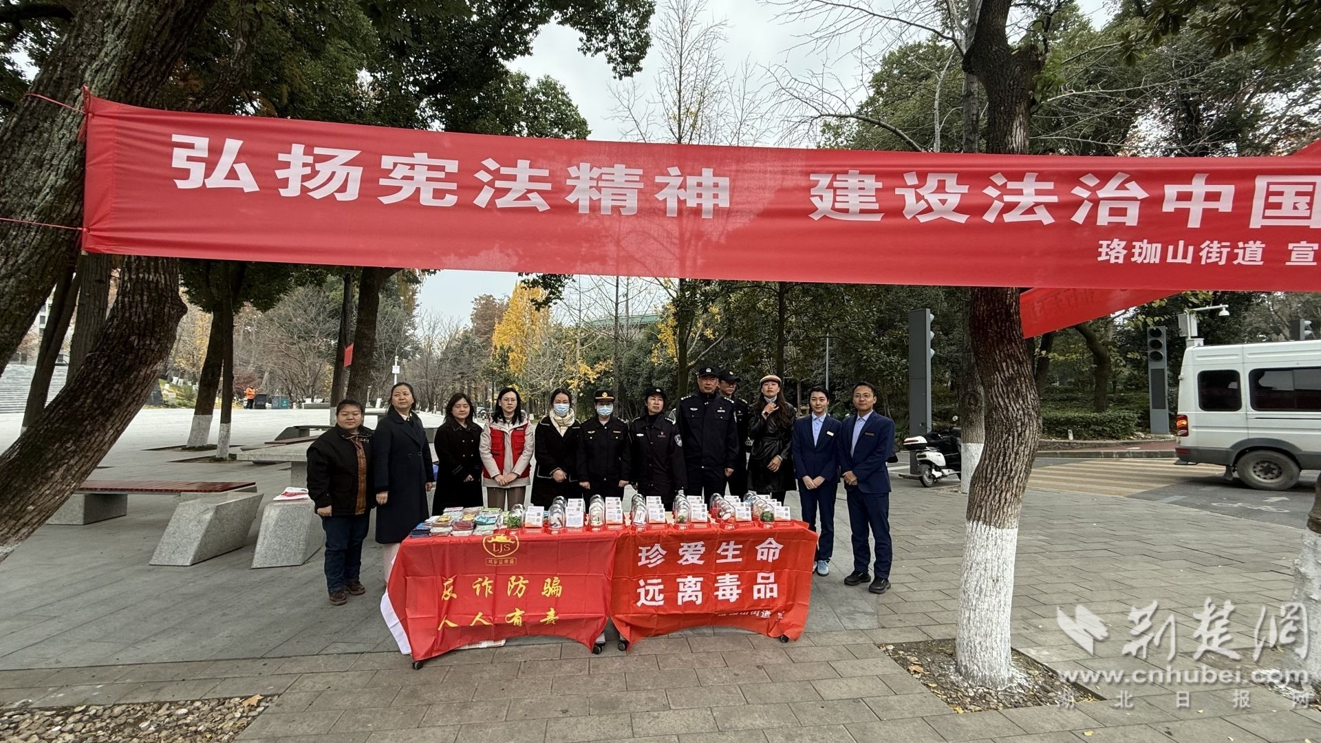 荊楚網(wǎng)(湖北日報網(wǎng))訊(通訊員 方茜)12月4日,武昌區(qū)珞珈山街道聯(lián)合武漢大學(xué)保衛(wèi)部、轄區(qū)派出所、司法所、執(zhí)法隊等多部門,在武漢大學(xué)萬林藝術(shù)博物館門前舉辦“憲法宣傳周”暨國家憲法日集中宣傳活動。本次活動以“憲法守護健康權(quán),禁毒筑牢生命線”為主題,旨在弘揚憲法精神,增強全民法治觀念,同時深化禁毒宣傳教育,筑牢校園與社會禁毒防線。