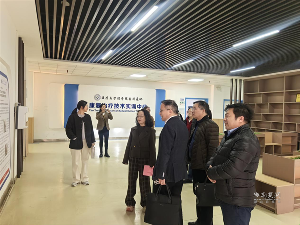 劉連忠院長、高海兵主席一行參觀醫(yī)護學院康復治療技術實訓中心。 通訊員供圖