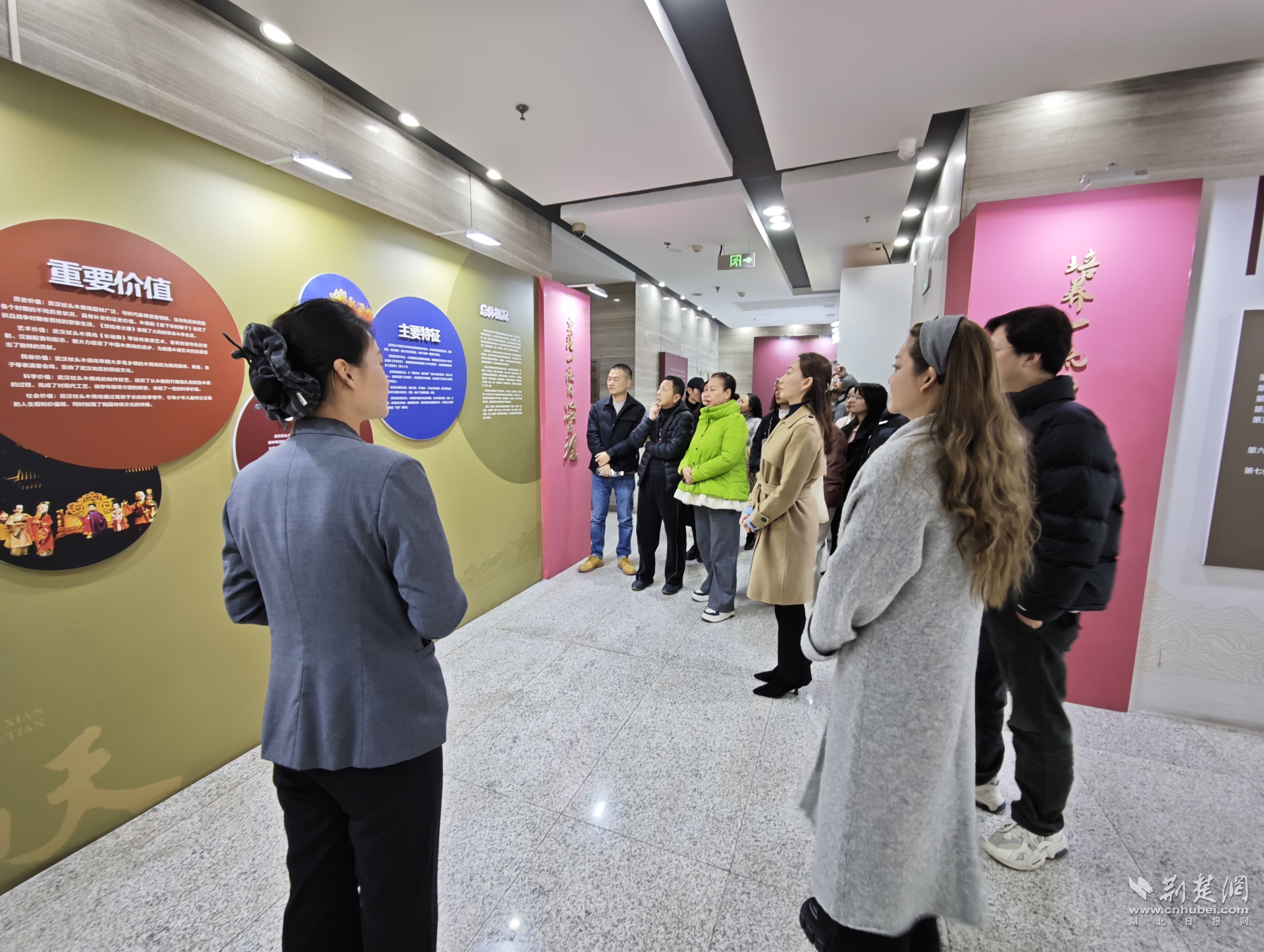 隨后,一行人來(lái)到武漢杖頭木偶戲?qū)n}展。在非遺傳承保護(hù)人的講解下,大家近距離了解杖頭木偶的制作工藝、表演技巧及保護(hù)傳承成果。一刀一刻的匠心、一舉一動(dòng)的神韻,讓成員們直觀(guān)感受到傳統(tǒng)藝術(shù)背后的時(shí)間厚度與文化力量。
