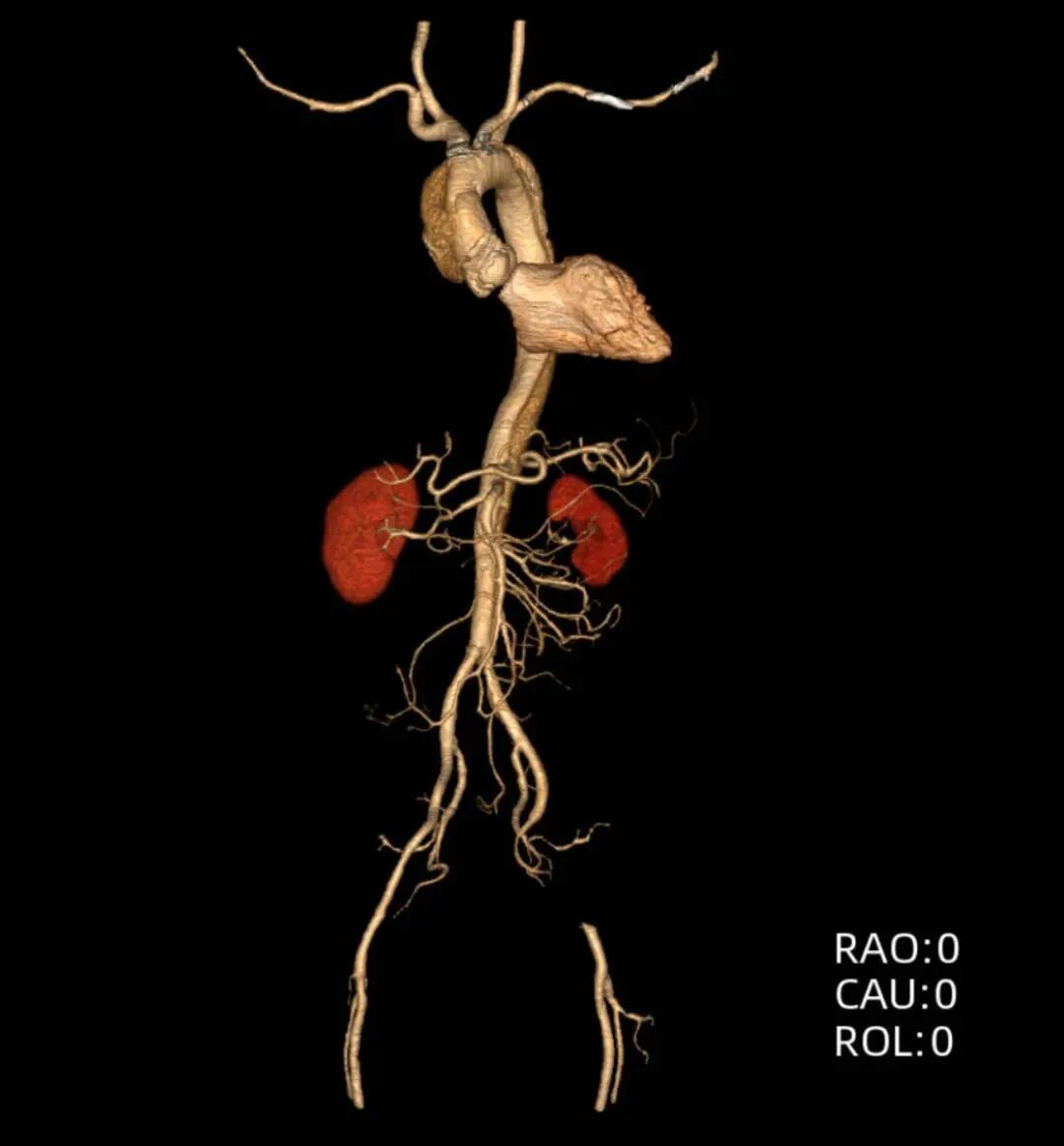 據(jù)悉,其中一例患者因A型主動脈夾層合并心包積液緊急入院,經(jīng)檢查發(fā)現(xiàn),夾層從升主動脈延伸至左側(cè)髂動脈,已導致左下肢缺血,足背動脈有創(chuàng)血壓無法測出。該患者既往患有嚴重高血壓,血壓長期高于200mmHg,經(jīng)多種藥物聯(lián)合治療仍控制不佳,同時合并長期糖尿病、左腎萎縮致腎功能不全(肌酐235μmol/L),更為棘手的是,患者還存在重度原發(fā)性肺動脈高壓(74mmHg),這一情況極大增加了手術與麻醉的風險系數(shù)。