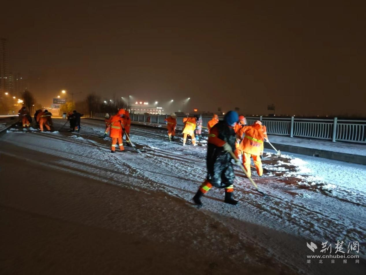 荊楚網(wǎng)(湖北日?qǐng)?bào)網(wǎng))訊(通訊員姜鵬)1月20日凌晨,武漢市迎來今冬首場(chǎng)降雪。為確保城市道路暢通,武漢經(jīng)開區(qū)軍山街道的環(huán)衛(wèi)工人提前上崗,在嚴(yán)寒中開展掃雪除冰作業(yè),并在交通高峰時(shí)段主動(dòng)幫助受困車輛,三小時(shí)內(nèi)徒手助推近40輛汽車脫困,成為風(fēng)雪中最暖心的“橙色力量”。