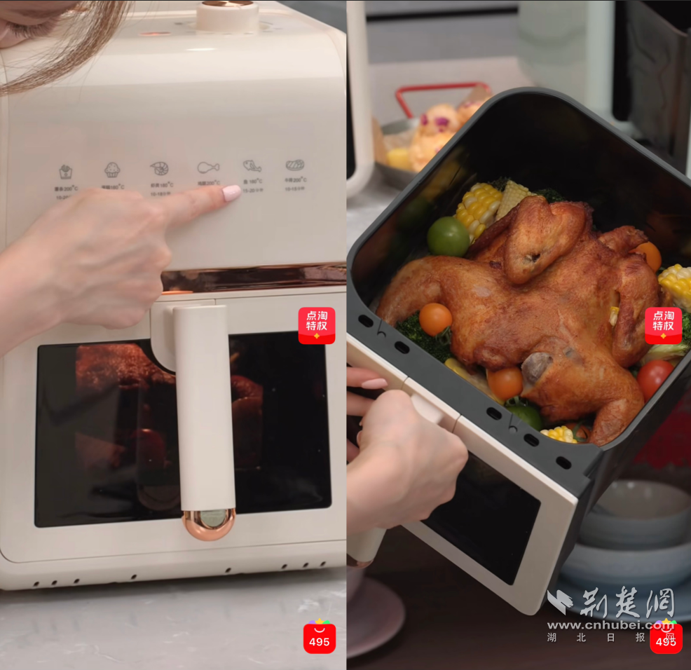 “以前炒個(gè)青菜都能糊鍋,現(xiàn)在靠著直播間買的這些小家電,居然能輕松做出一桌子硬菜?!绷謵倢?duì)著廚房盤點(diǎn),除了空氣炸鍋、多功能料理機(jī)、智能電飯煲,她最近又在李佳琦直播間年貨節(jié)購入了一臺(tái)小型破壁機(jī),“冬天早起困難,如果晚上提前預(yù)約好豆?jié){,早飯問題就解決了?!?/p>