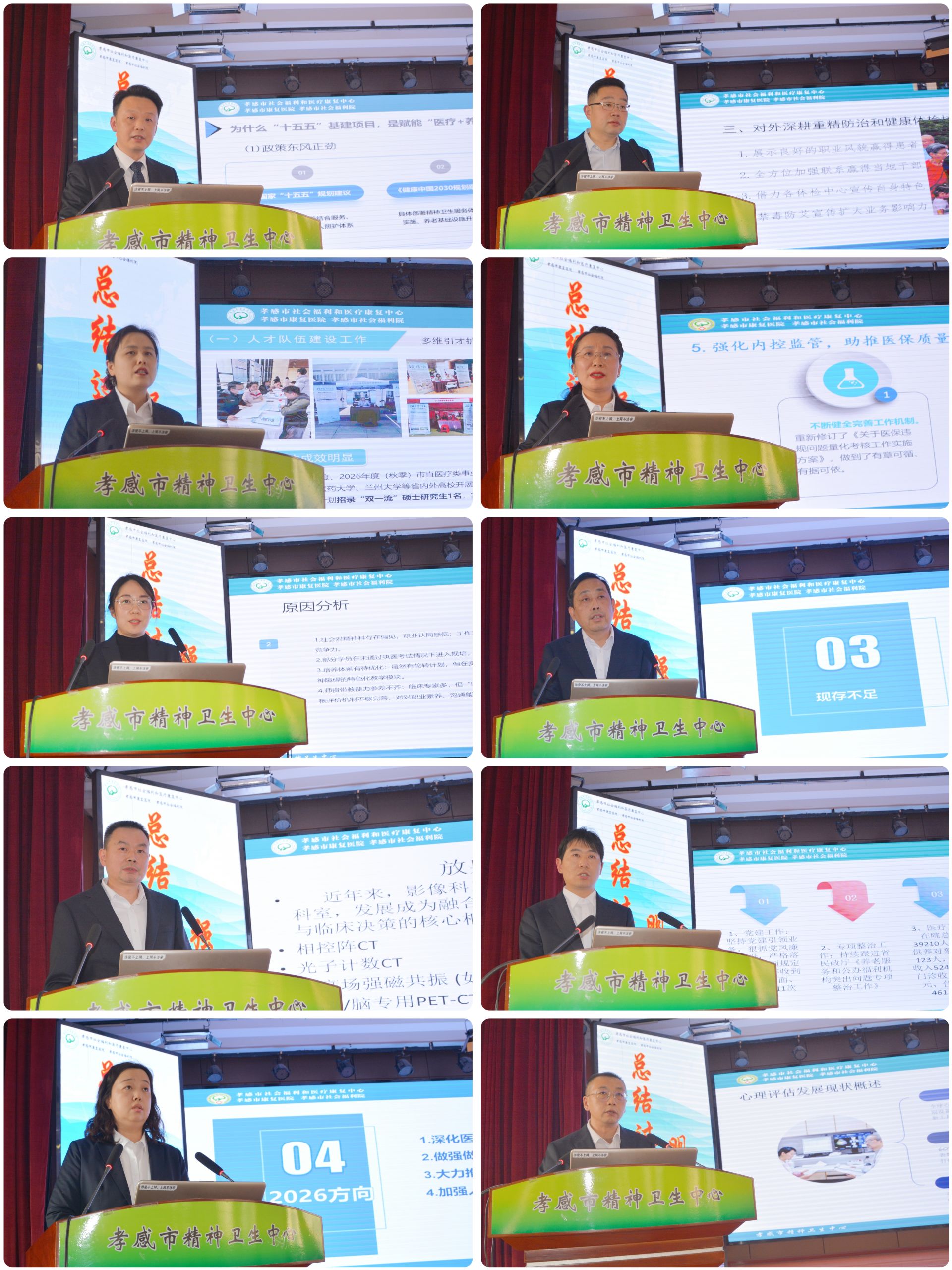 會(huì)上,各科室負(fù)責(zé)人依次登臺(tái)匯報(bào),緊扣國(guó)家“十五五”規(guī)劃、健康中國(guó)行動(dòng)及“精神衛(wèi)生服務(wù)年”等核心政策導(dǎo)向,精準(zhǔn)對(duì)接人口老齡化背景下的民生服務(wù)需求,既全面梳理了2025年各項(xiàng)工作取得的成效亮點(diǎn),又直面發(fā)展瓶頸深入剖析問題根源,更結(jié)合科室實(shí)際提出了2026年的創(chuàng)新思路與務(wù)實(shí)舉措,充分展現(xiàn)了“中心”干部職工勇?lián)姑?、共謀發(fā)展的責(zé)任擔(dān)當(dāng)與昂揚(yáng)向上的奮進(jìn)姿態(tài)。