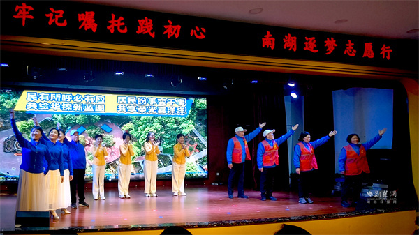 活動中,取材于寧松社區(qū)真實故事的情景劇《南湖暖陽》,藝術再現(xiàn)了鄰里互助的溫情日常;華錦社區(qū)自編自導自演的情景劇《華錦“民”星,微光閃亮》,將社區(qū)“民星”們植綠煥新、熱心服務的點滴故事搬上舞臺,生動詮釋了“微光”的力量;水域天際社區(qū)的詩朗誦《以志愿之名書青春華章》,配合著志愿者從舞臺各處匯聚而來的精心設計,寓意著志愿服務精神在南湖遍地開花……這些源自生活、貼近民心的節(jié)目,不僅豐富了風采展的形式,更讓感動人心的力量在藝術的共鳴中得以升華和傳遞。