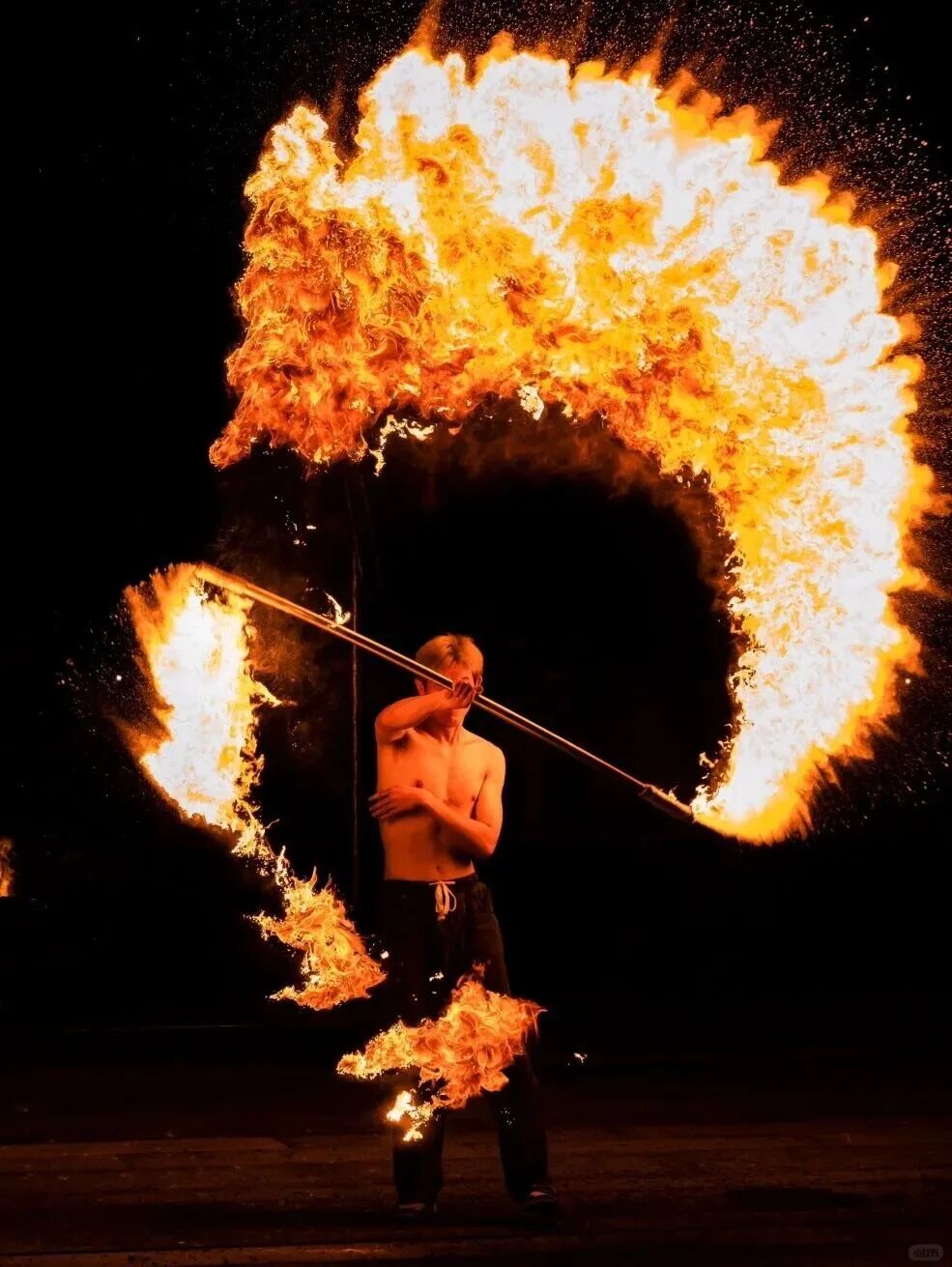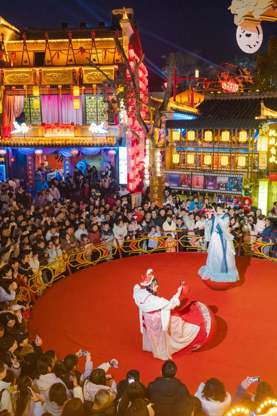 ??木蘭不夜城非遺賀春年以“火”為核心,上演打鐵花、火壺、火刀等震撼視覺的非遺特技演出,點亮夜空,祈愿新年紅紅火火。