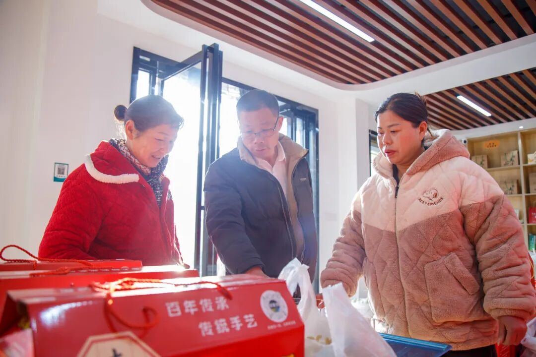 除了優(yōu)質(zhì)選品,在運營模式上,基地還采用線上線下雙輪驅(qū)動。線上以“祁家灣優(yōu)品”抖音直播間為主要陣地,組建了由5名村“兩委”干部構成的直播團隊,定期開展直播帶貨,直播場景覆蓋生產(chǎn)現(xiàn)場等多種實地環(huán)境。線下則通過實體展示館進行產(chǎn)品體驗、零售以及面向企業(yè)與社區(qū)的團購批發(fā)業(yè)務,形成銷售閉環(huán)。