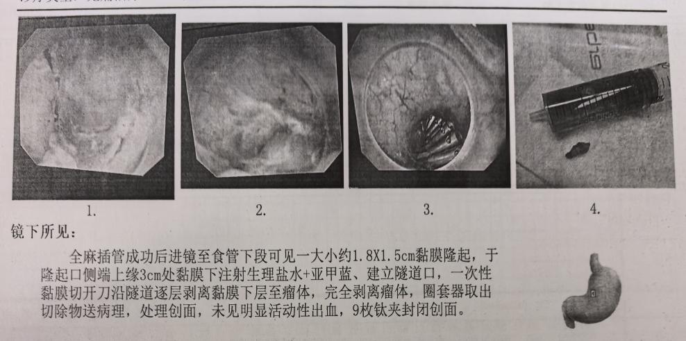 患者劉先生因反復出現(xiàn)吞咽不適、進食梗阻感前往醫(yī)院就診。經(jīng)胃鏡檢查,醫(yī)生發(fā)現(xiàn)其食管下段存在隆起性病變,消化內(nèi)科Ⅱ病區(qū)專家團隊結(jié)合患者病情進行會診后,決定采用STER技術(shù)為其開展微創(chuàng)治療。手術(shù)在全身麻醉下進行,手術(shù)團隊在患者食管黏膜上建立微小“隧道”,通過該隧道精準切除病變組織,隨后用9枚鈦夾妥善夾閉創(chuàng)口,整個手術(shù)過程出血極少,進展順利。