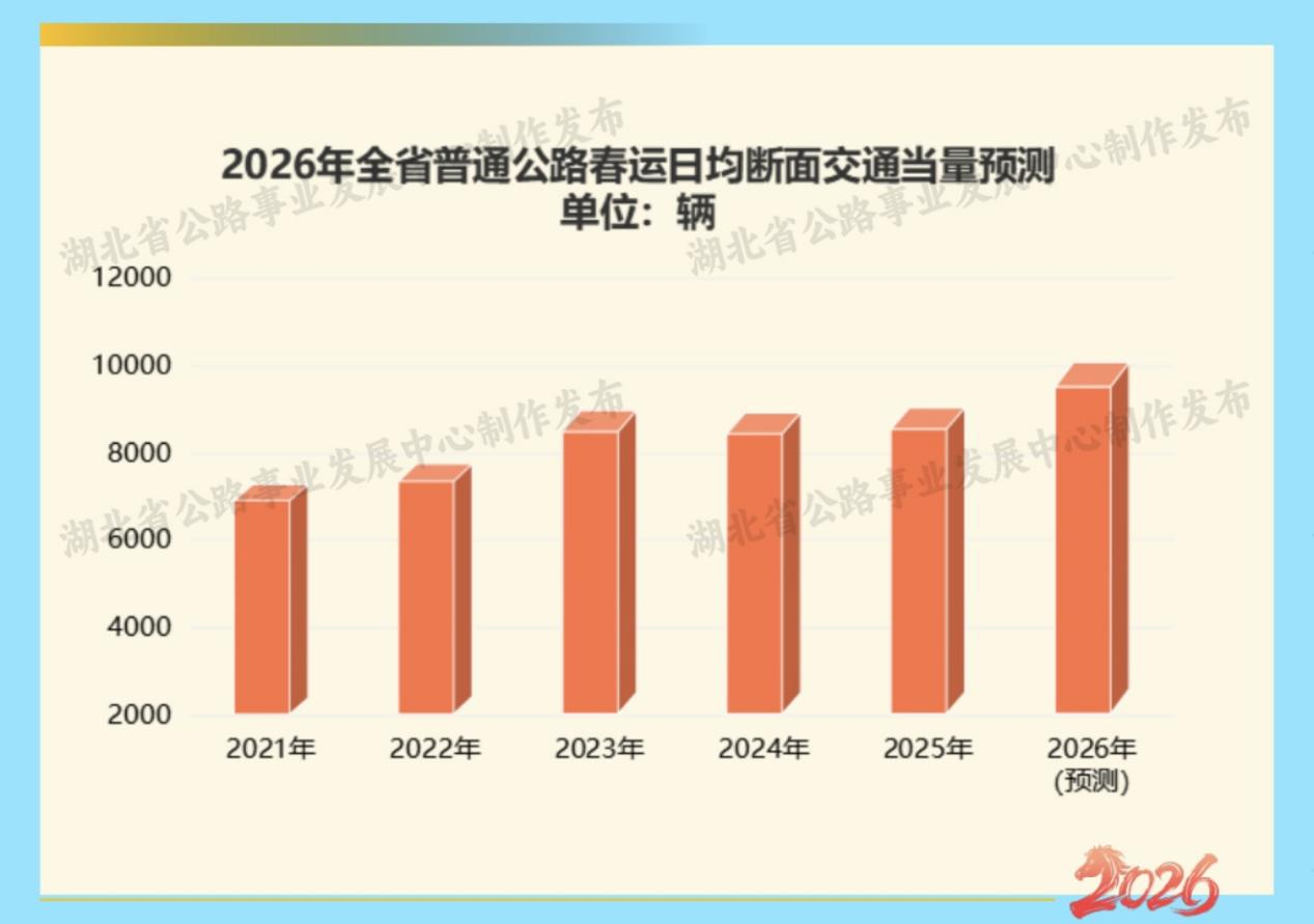 預(yù)判2026年春運(yùn)期間普通國(guó)省干線(xiàn)公路日均斷面交通當(dāng)量,與2024年春運(yùn)期間、2025年春運(yùn)期間基本持平。