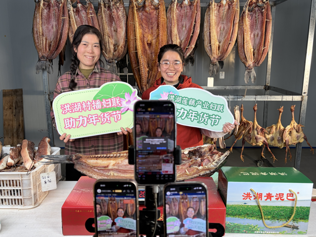 洪湖市蓮藕產業(yè)鏈婦聯(lián)、村播婦聯(lián)通過直播推介蓮藕、臘肉等年貨,以“線上+線下”融合模式讓家鄉(xiāng)美味走向全國。