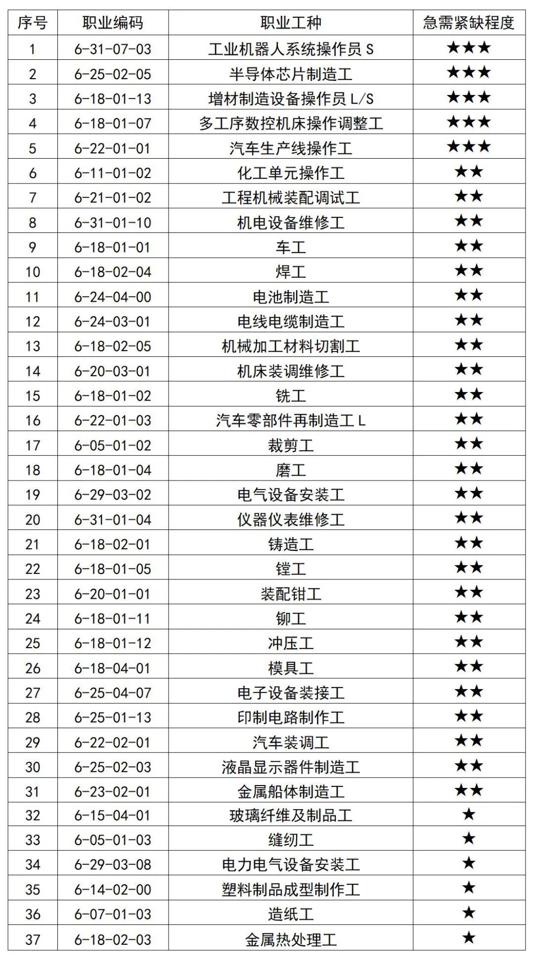 3.急需緊缺程度:★為一般急需緊缺,★★為比較急需緊缺,★★★為非常急需緊缺。