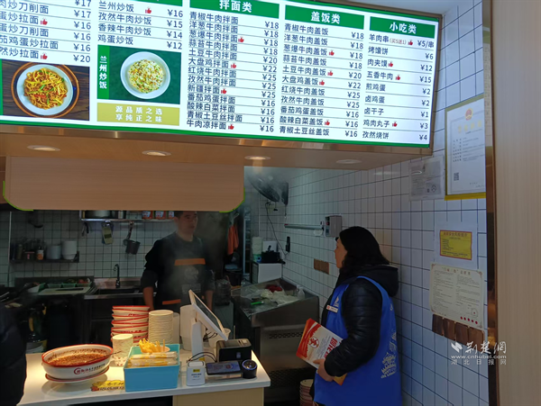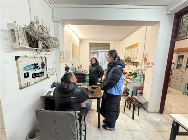網(wǎng)格員與商戶親切交流,了解經(jīng)營情況和春節(jié)安排。通訊員供圖