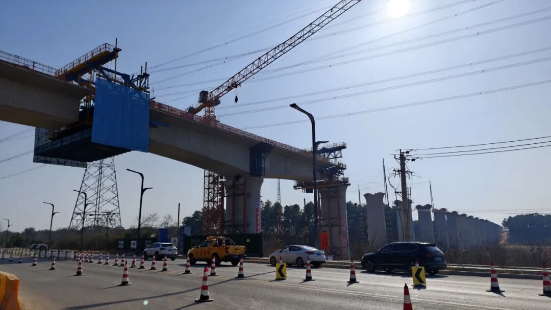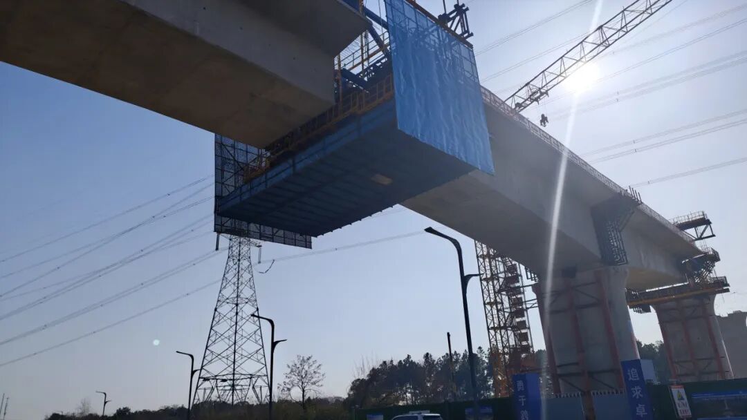 唐旺表示,當前重點推進跨川龍大道連續(xù)梁施工,全體人員加班加點、爭分奪秒搶抓工期,全力確??绱埓蟮肋B續(xù)梁三月底順利合攏。