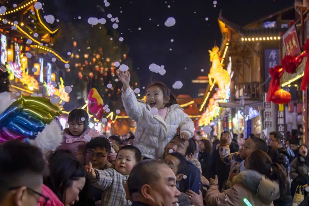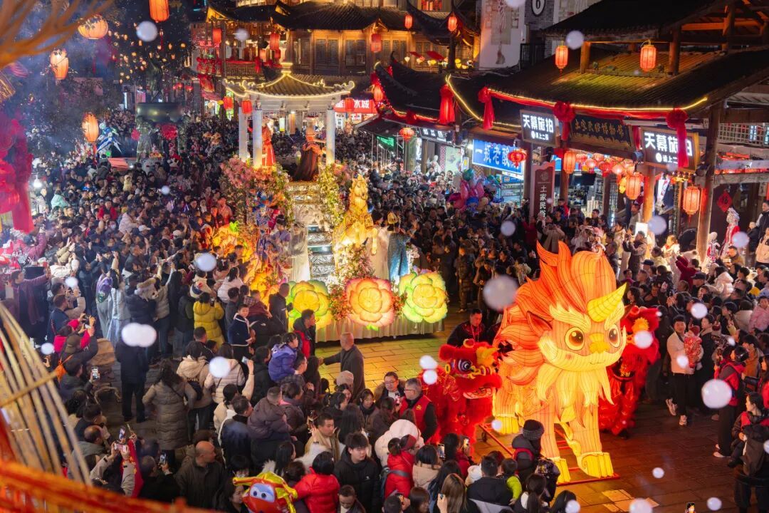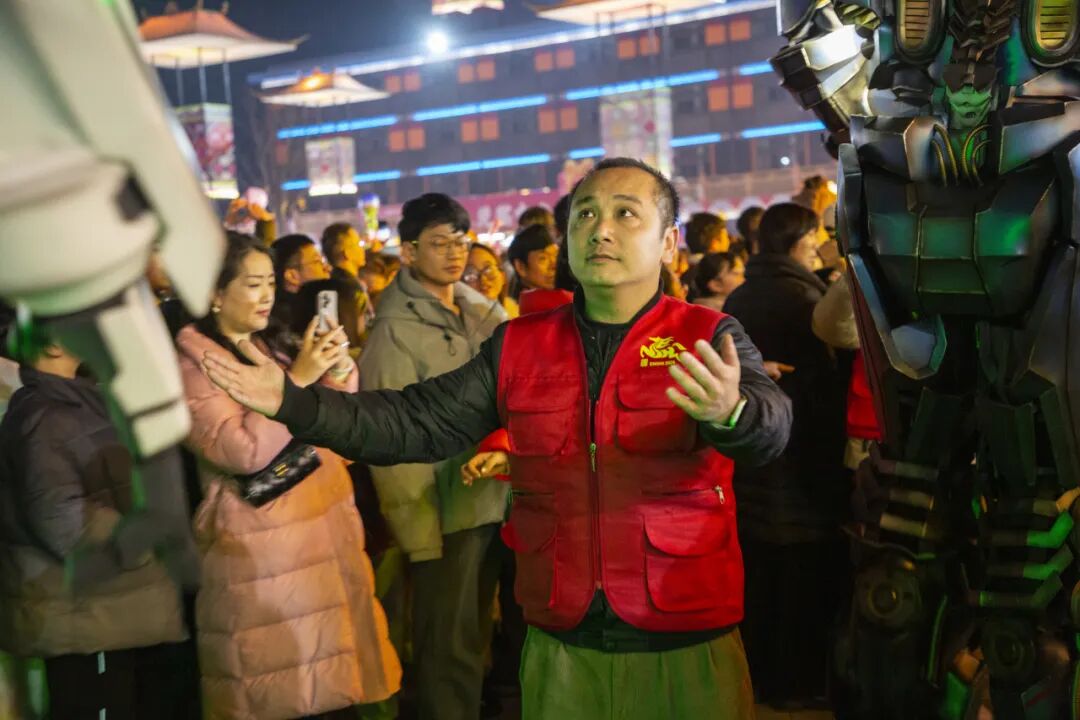 30余場馬年主題花車年獸巡游、超585場演出互動密集開展。七彩燈串裝飾的花車、身著盛裝的演員、威風的年獸、酷炫的變形金剛機甲、戴五彩儺面具的舞者組成的巡游方陣,傳統(tǒng)與現(xiàn)代碰撞,氛圍感拉滿。