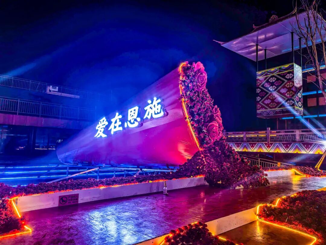 同時,12米高、20米長的“錦馬呈祥”巨型燈組搭配西蘭卡普紋樣飄帶,《山海尋夢》《萬馬奔騰》等26組特色花燈點亮夜空,其中“萬馬奔騰”燈組360度旋轉,成為游客拍照打卡的熱門點位。